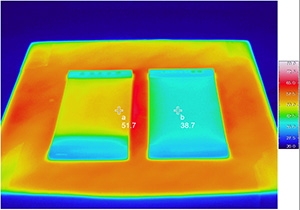 例えば、同じ遮熱塗料の塗板と、非遮熱塗料の塗板を真夏の日の当たる場所に置きます。