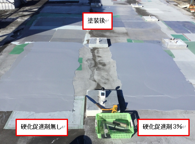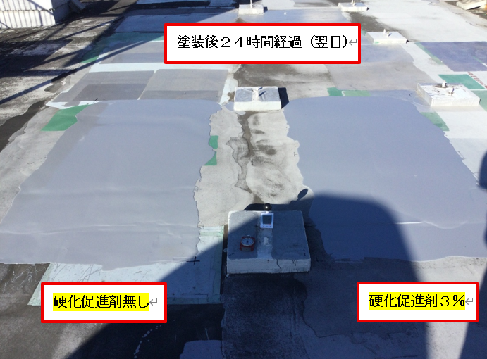 では、実際に硬化促進剤を使った場合にどれくらい差が出るのでしょうか?