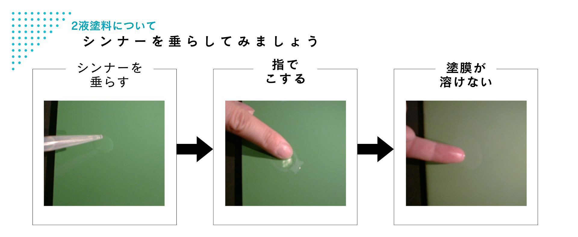 このように、シンナーを垂らしても塗膜は溶けません。